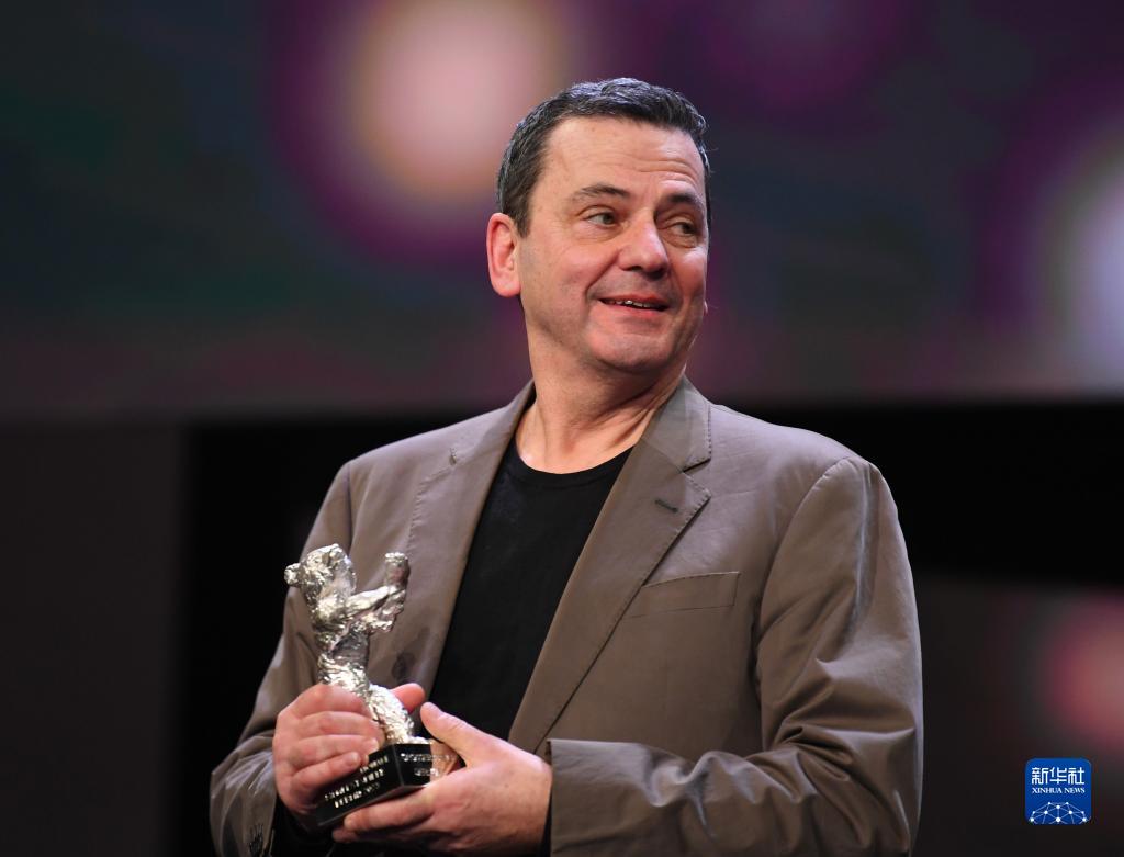 2月25日,在德國(guó)柏林,德國(guó)影片《紅色天空》導(dǎo)演克里斯蒂安·佩措爾德在頒獎(jiǎng)儀式上發(fā)言。《紅色天空》獲得評(píng)審團(tuán)大獎(jiǎng)銀熊獎(jiǎng)。