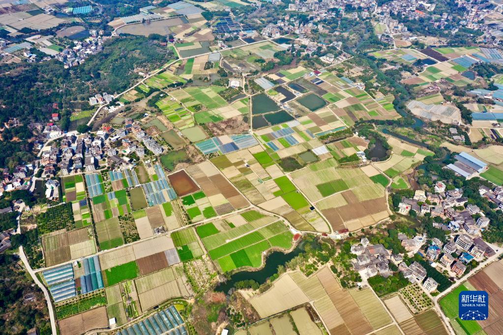 春耕時節(jié),在福建省福州市鄉(xiāng)村山嶺間,一塊塊形狀各異、五彩斑斕的田地猶如大地上的拼圖,呈現別樣的春耕畫卷。