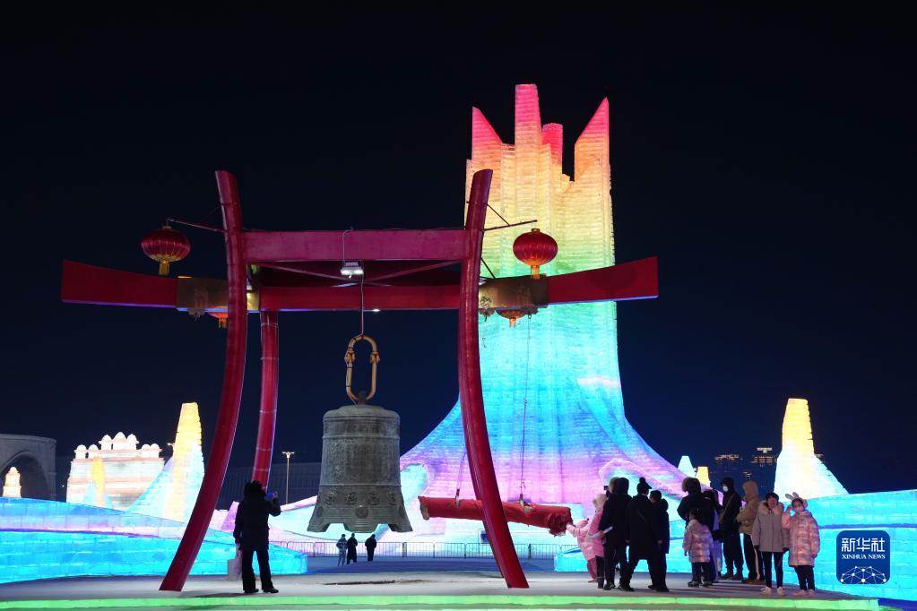 2月25日,游客在哈爾濱冰雪大世界園區游玩。