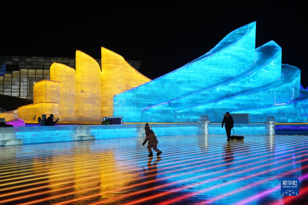 2月25日,游客在哈爾濱冰雪大世界園區游玩。