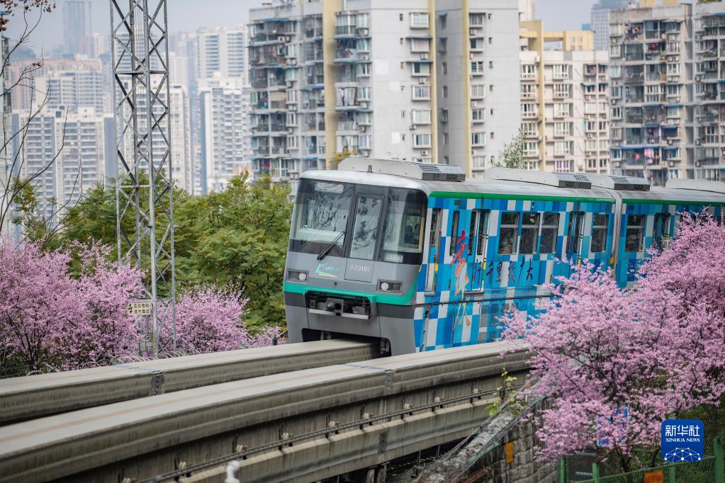 這是2月27日拍攝的運營中的重慶軌道交通2號線列車。