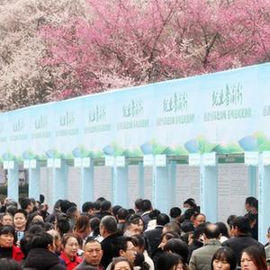 2月27日,人們?cè)谥貞c市黔江區(qū)武陵文化廣場(chǎng)招聘活動(dòng)上了解求職信息。