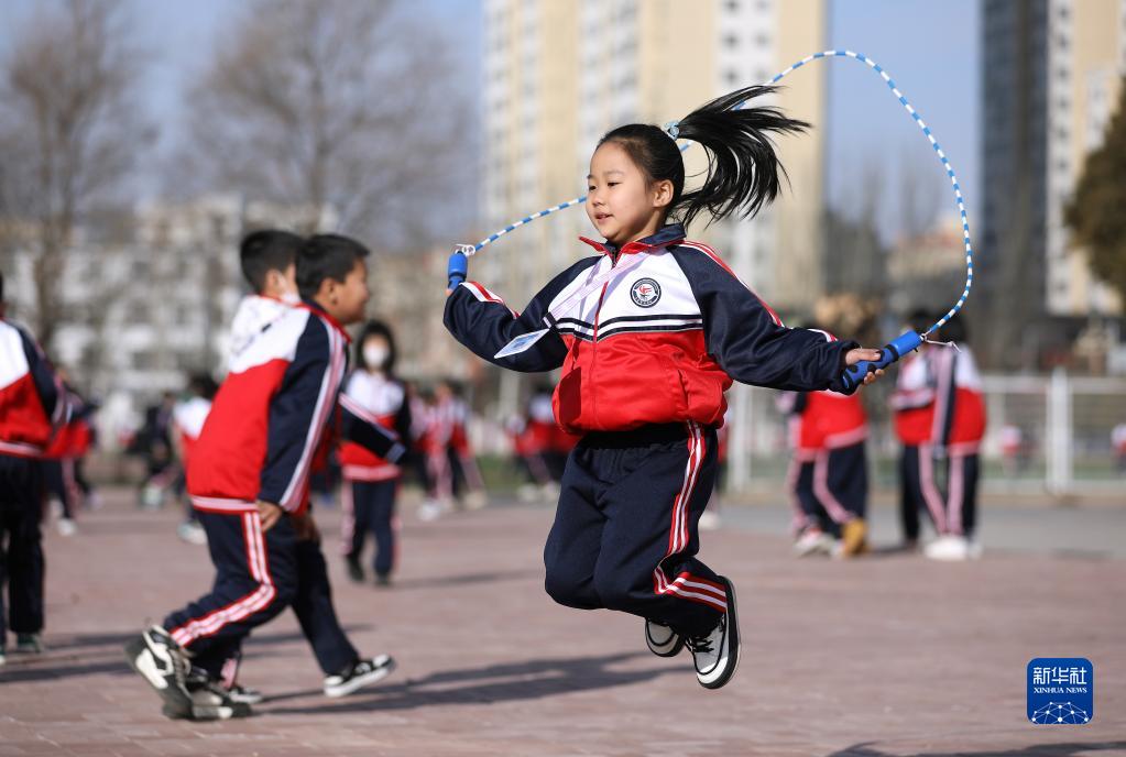 3月1日,鞍山市臺安縣實驗學校的學生在進行課間運動。