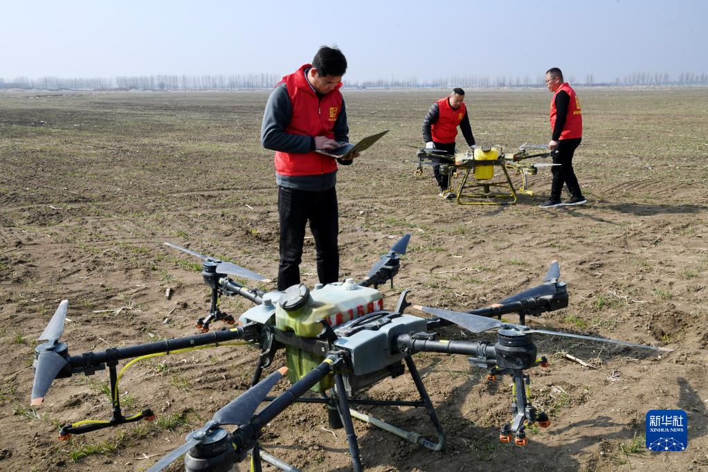 在萊西市夏格莊鎮(zhèn)數(shù)字農(nóng)業(yè)產(chǎn)業(yè)園內(nèi),技術(shù)人員將最新航測數(shù)據(jù)導(dǎo)入植保無人機(jī),為精確噴灑作業(yè)提供數(shù)據(jù)支持(2月28日攝)。