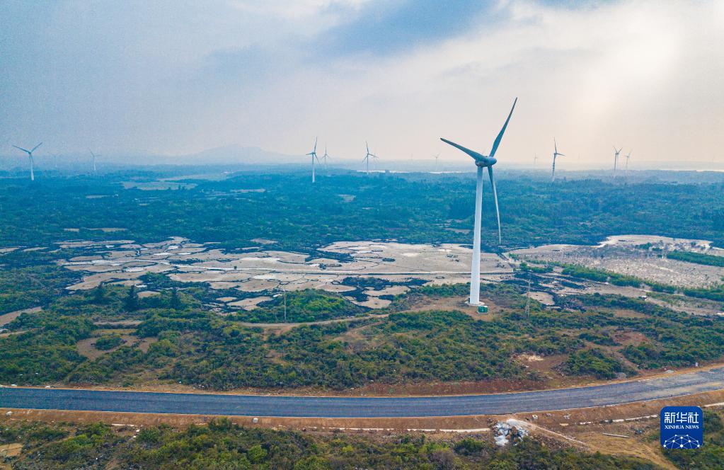 在海南省儋州市峨蔓鎮(zhèn)拍攝的建設(shè)中的海南環(huán)島旅游公路(無(wú)人機(jī)照片,2月24日攝)。