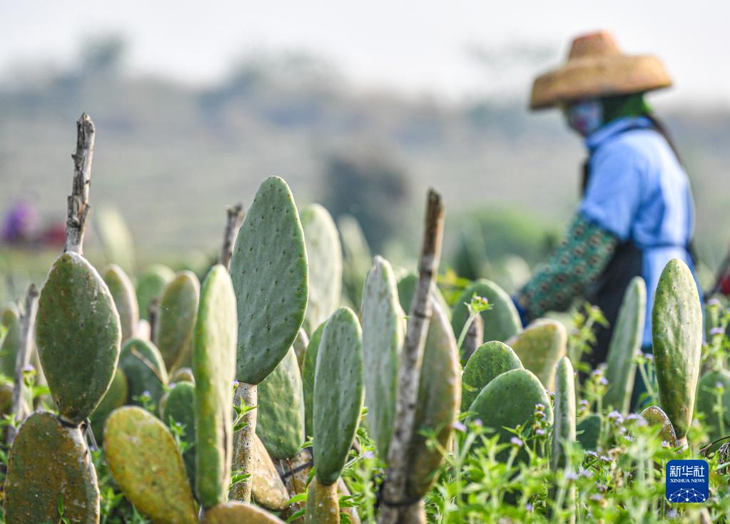 在海南省儋州市王五鎮拍攝的中美墨仙人掌種植基地(2月20日攝)。