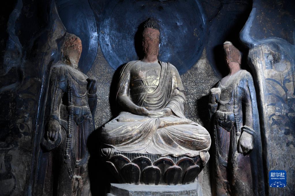 這是寧夏須彌山石窟圓光寺48號窟內完成修復的佛像(2月28日攝)。