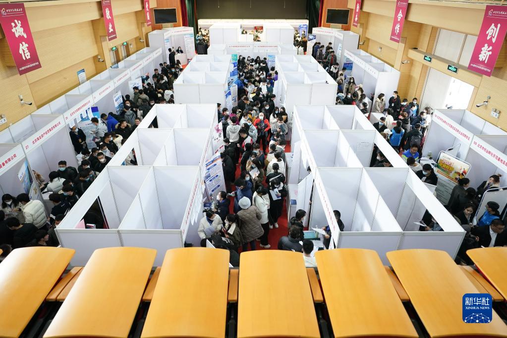 3月1日,在北京信息科技大學,求職學生在招聘會內求職。