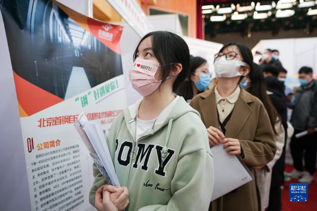 3月1日,在北京信息科技大學,求職學生在招聘會內求職。