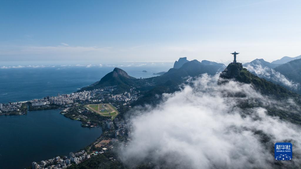 這是3月1日拍攝的巴西里約熱內盧基督像和羅德里戈德弗雷塔斯湖(無人機照片)。