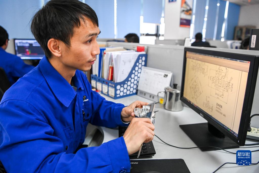 2月14日,在廣西柳工機械股份有限公司的辦公室,周穎峰在校對配件的技術參數。