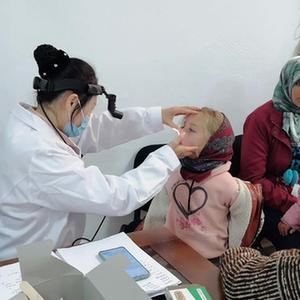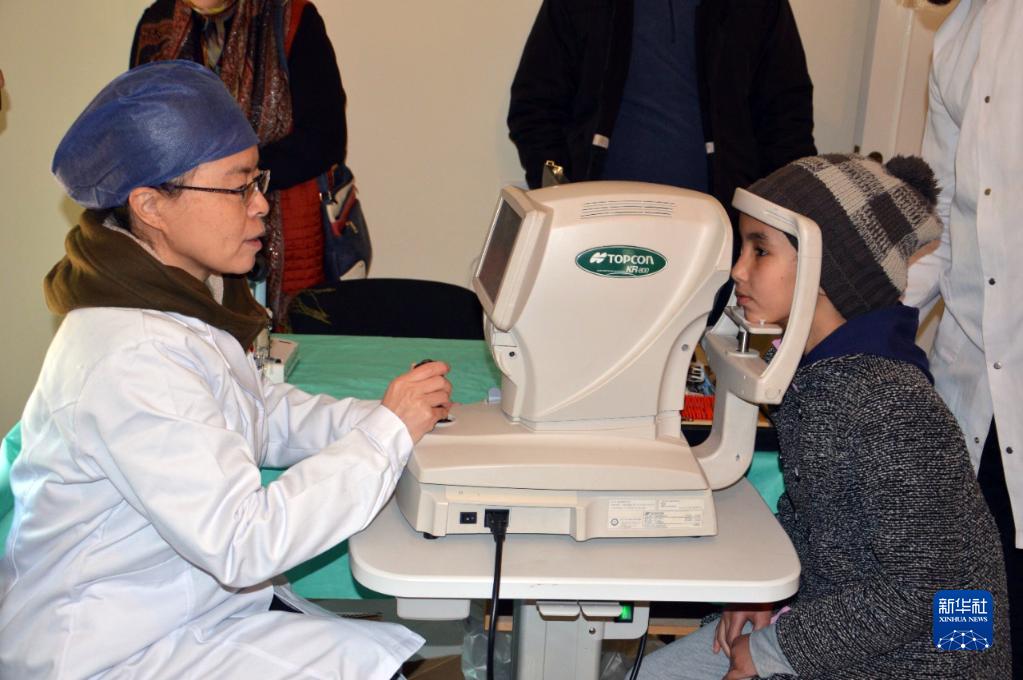 1月12日,在摩洛哥塔扎,中國援摩醫療隊的眼科醫生金熙為當地群眾義診。
