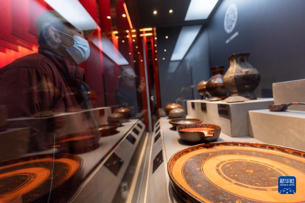3月3日,人們在上海市閔行區(qū)博物館《漢·無極——長沙馬王堆文物精品展》觀看漆器。