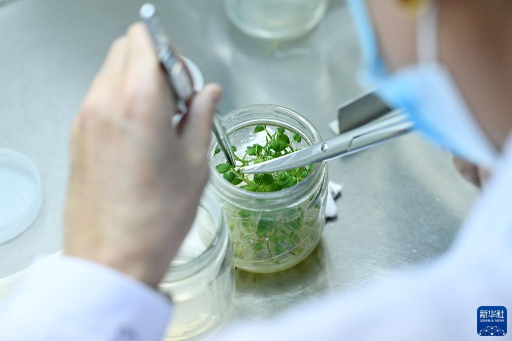 工作人員在寧夏西吉縣恒豐馬鈴薯種薯脫毒繁育中心進行馬鈴薯脫毒苗切段繁育(3月2日攝)。
