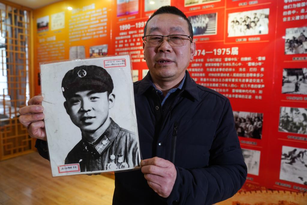 2月24日,金沙小學(xué)原副校長徐偉展示1997年雷鋒戰(zhàn)友喬安山贈送的雷鋒照片。
