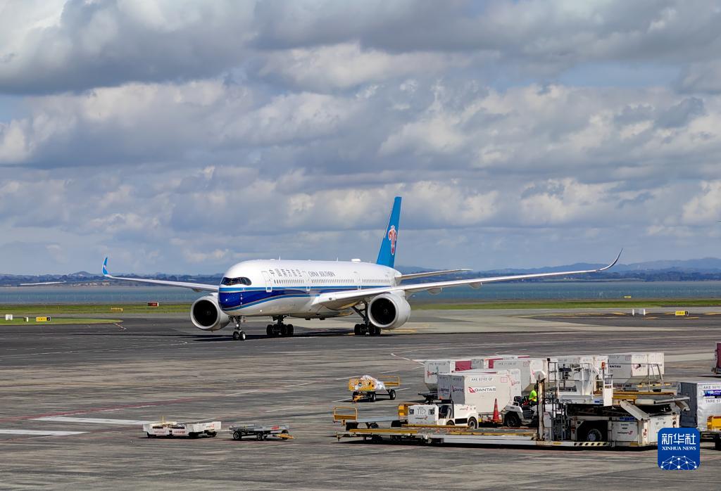 3月3日,搭載中國團隊游客的中國南方航空公司班機抵達新西蘭奧克蘭國際機場。