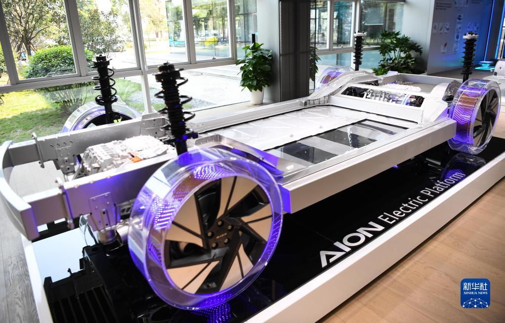 在廣汽埃安新能源汽車股份有限公司現場展示的純電專屬平臺(2月24日攝)。