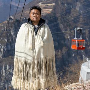 這是2月14日拍攝的鄭望春,其背后就是古路村村民出行所乘坐的懸崖索道纜車。
