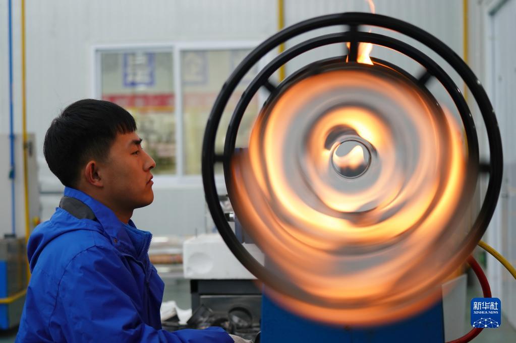 3月3日,河北省威縣一家新能源科技企業的員工在中高溫集熱管生產線上作業。