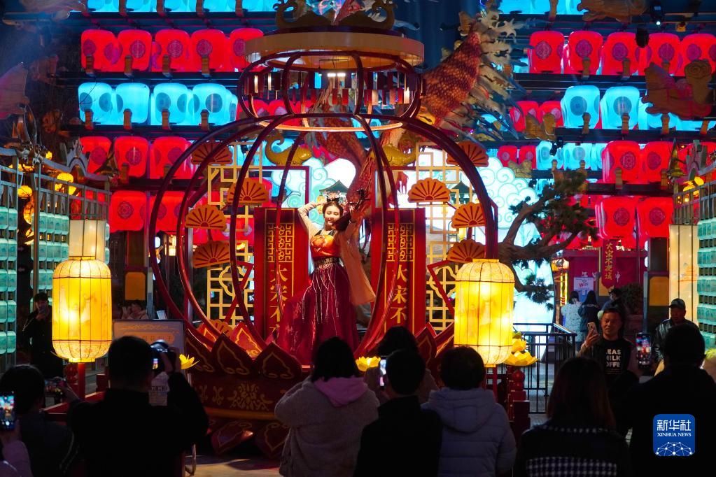 2月27日晚,游客在位于山東省東平縣的大宋不夜城觀看表演。大宋不夜城是山東省東平縣集古鎮(zhèn)風(fēng)情與宋文化街區(qū)于一體的全新旅游項(xiàng)目。大宋不夜城從今年1月7日正式向游客開放以來(lái),已吸引游客超過(guò)110萬(wàn)人次,對(duì)繁榮夜經(jīng)濟(jì)、拉動(dòng)消費(fèi)起到有效促進(jìn)作用。