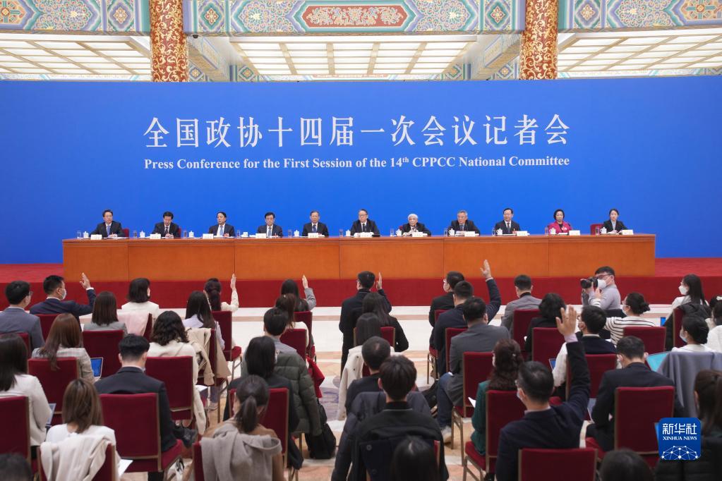 3月5日,全國政協十四屆一次會議在北京人民大會堂舉行民主黨派中央和全國工商聯領導人記者會。