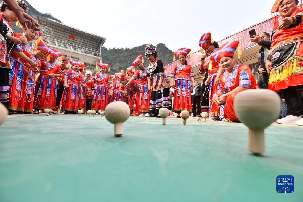 當日,廣西大化瑤族自治縣大化鎮仁良村舉辦“三八”國際婦女節陀螺比賽,壯、瑤、漢等各族婦女歡聚一堂,通過打陀螺、跳竹竿舞、品長桌宴等豐富多彩的民俗體育和文化活動,迎接節日。