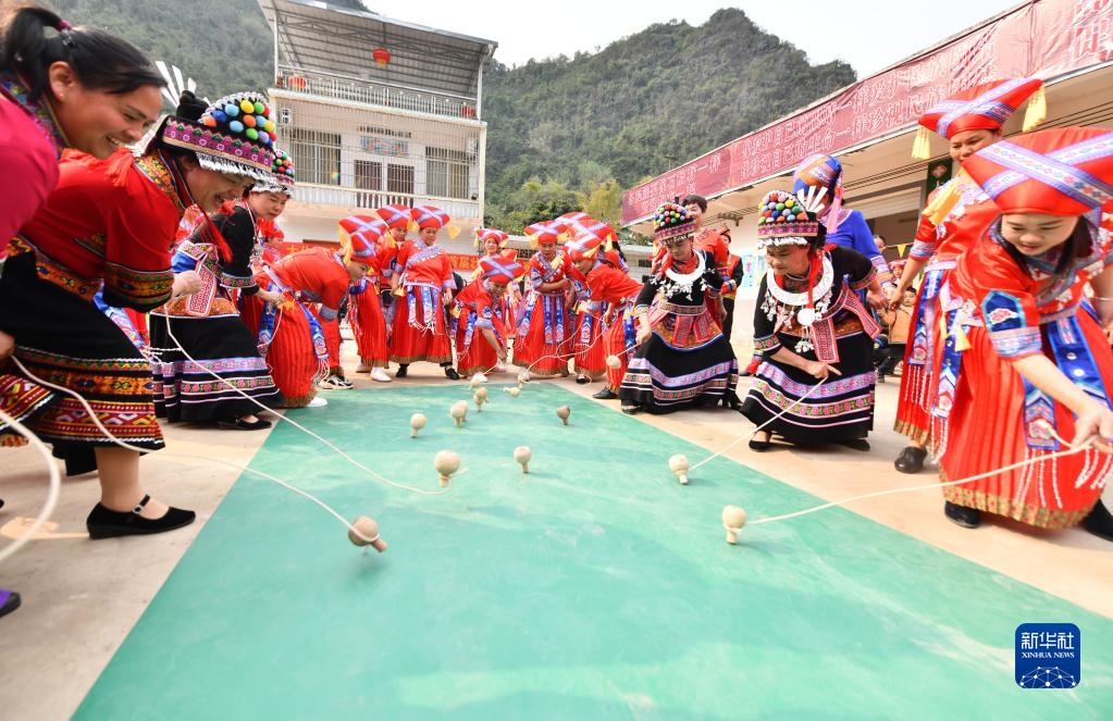 當日,廣西大化瑤族自治縣大化鎮仁良村舉辦“三八”國際婦女節陀螺比賽,壯、瑤、漢等各族婦女歡聚一堂,通過打陀螺、跳竹竿舞、品長桌宴等豐富多彩的民俗體育和文化活動,迎接節日。