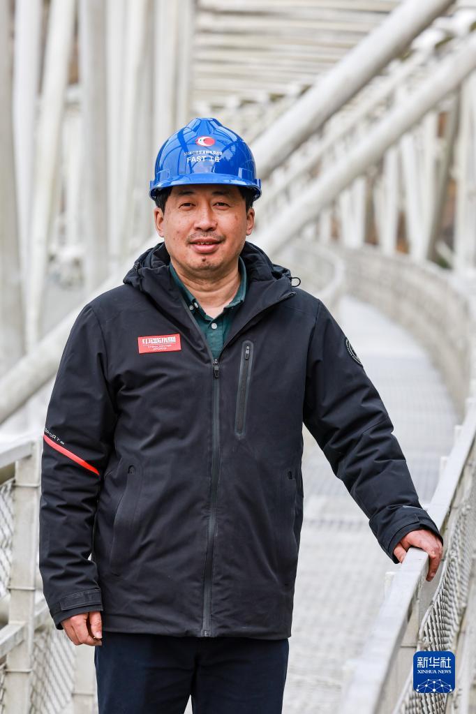 2月13日,姜鵬在“中國天眼”的圈梁上(維護(hù)保養(yǎng)期間拍攝)。