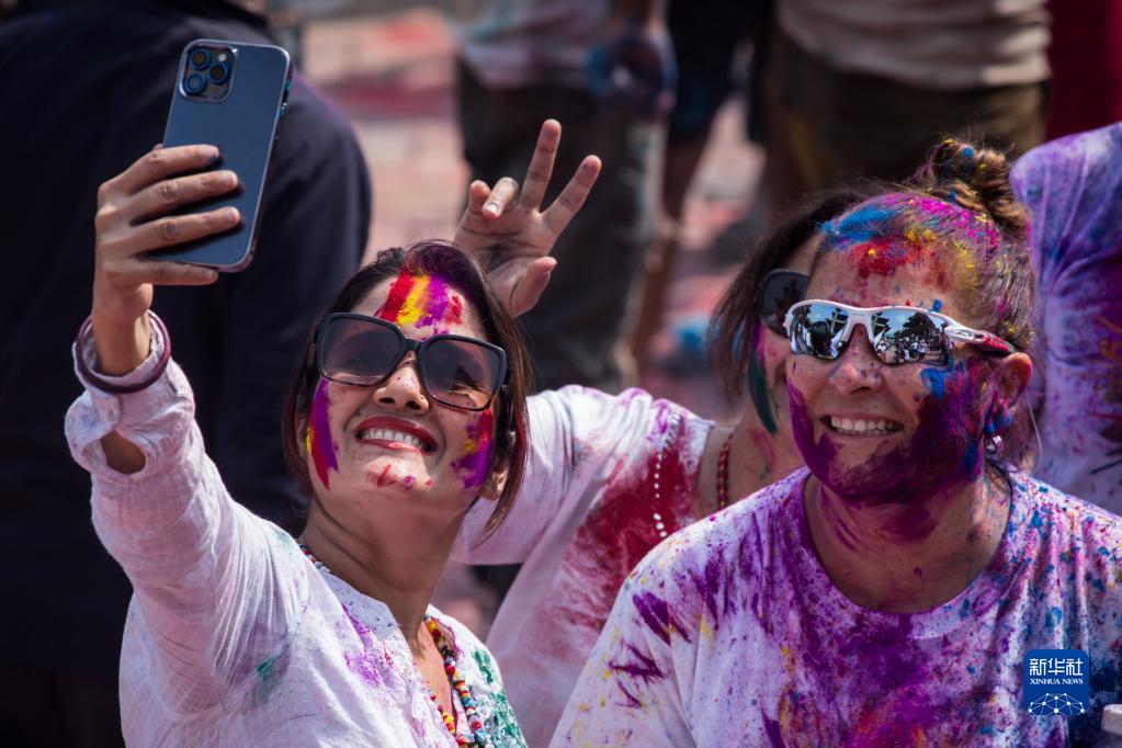 3月6日,人們在尼泊爾勒利德布爾參加灑紅節(jié)慶祝活動。