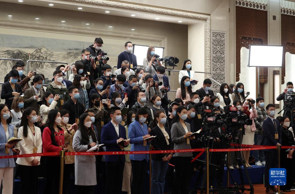 3月7日,全國政協十四屆一次會議第二場“委員通道”集體采訪活動在北京人民大會堂新聞發布廳舉行。這是記者在采訪。