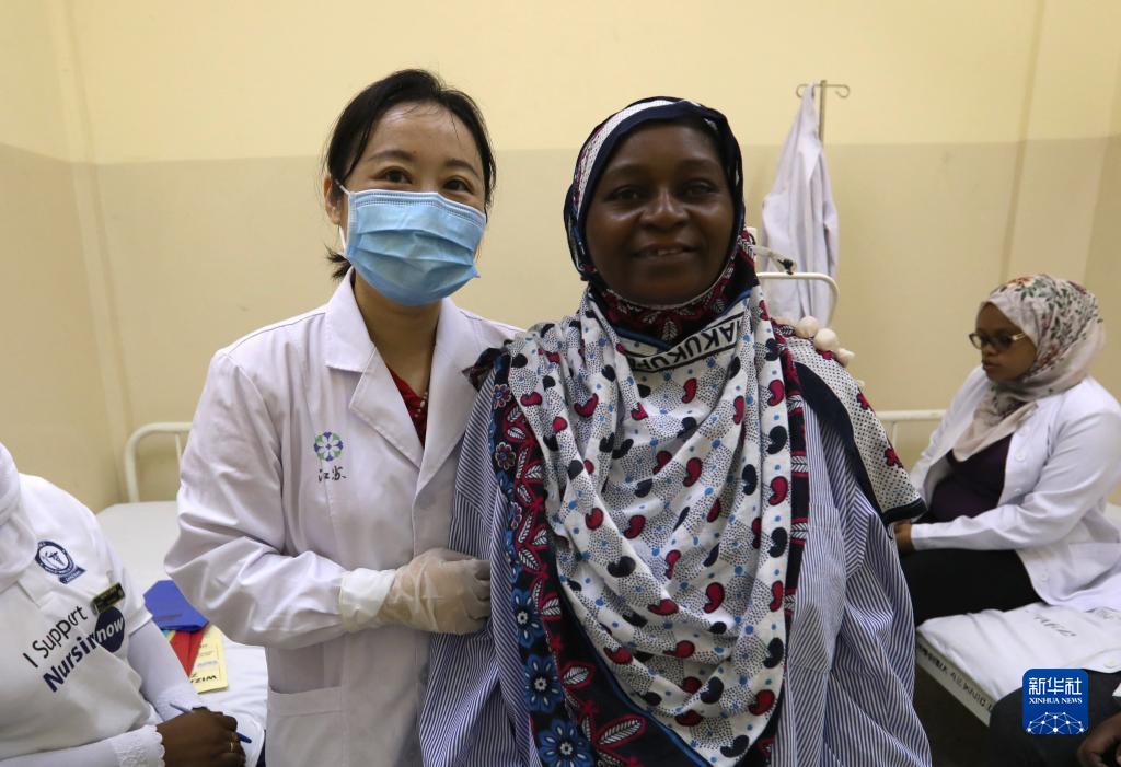 2月24日,在坦桑尼亞桑給巴爾島納茲莫加醫院,董莉莉(左)與術后視力恢復的穆欣合影。