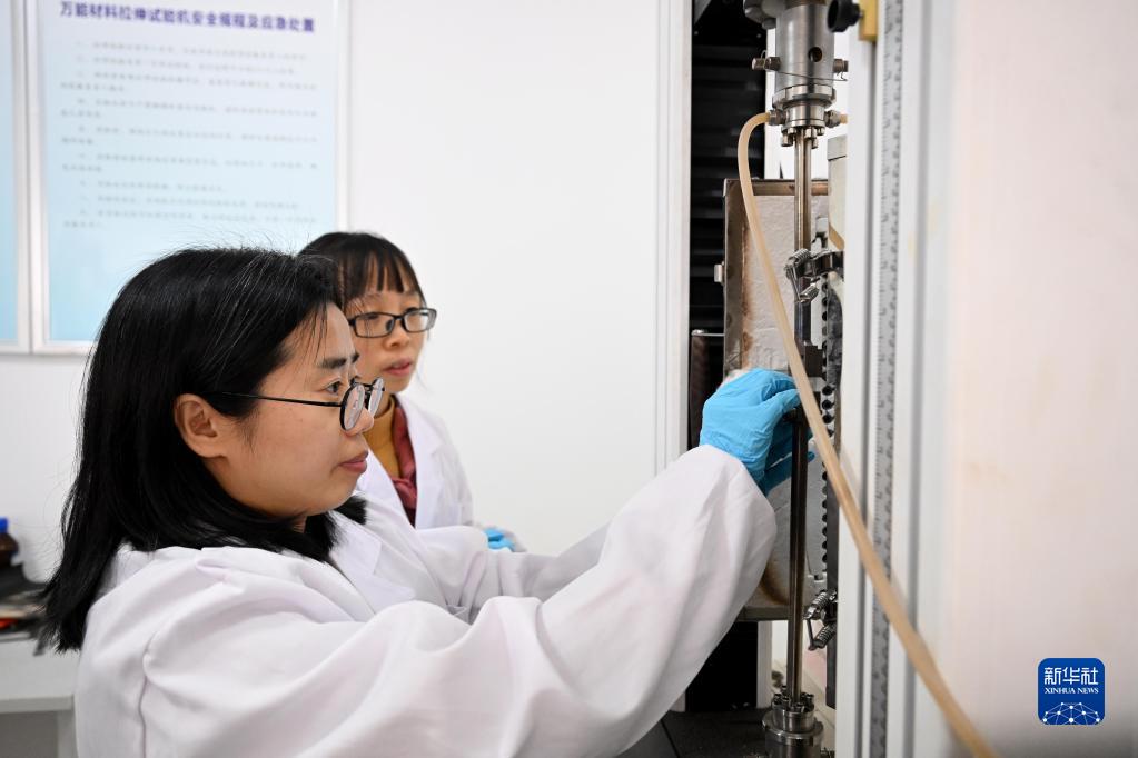 3月2日,中科院合肥物質科學研究院核能安全技術研究所核材料與結構安全研究室主任、研究員鄭明杰(前)在測試新材料的拉伸性能。
