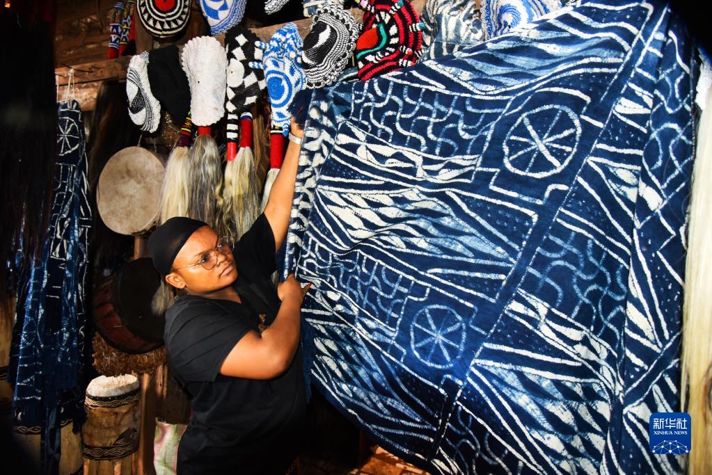 恩多普是主要流行于喀麥隆西部大區的一種布料,可以制成衣物、帽子和項鏈等。制作過程中,先用墨線在白色棉布上繪制紋樣,再用干燥的棕櫚葉脈做線把紋樣扎起來,經靛藍的植物染料浸染后,拆去棕櫚葉脈,便得到藍底白紋的恩多普。如今,眾多喀麥隆婦女投入恩多普制作領域,這不僅改善了她們的生活,也推動了文化的傳承。