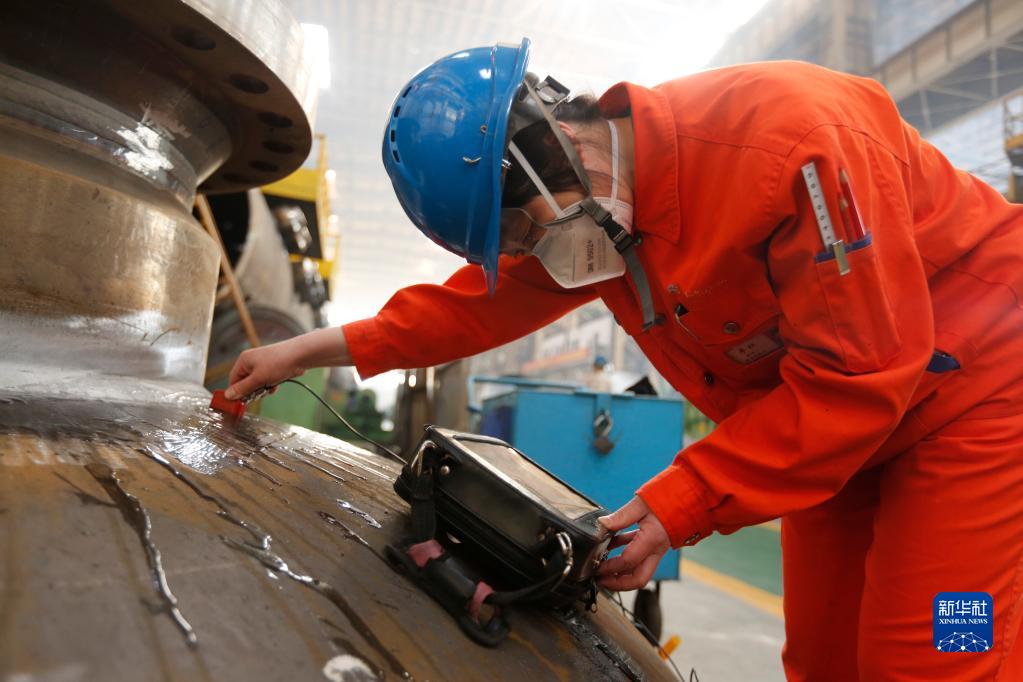 3月6日,哈電集團(tuán)哈爾濱鍋爐廠有限責(zé)任公司探傷工李紅在作業(yè)中。