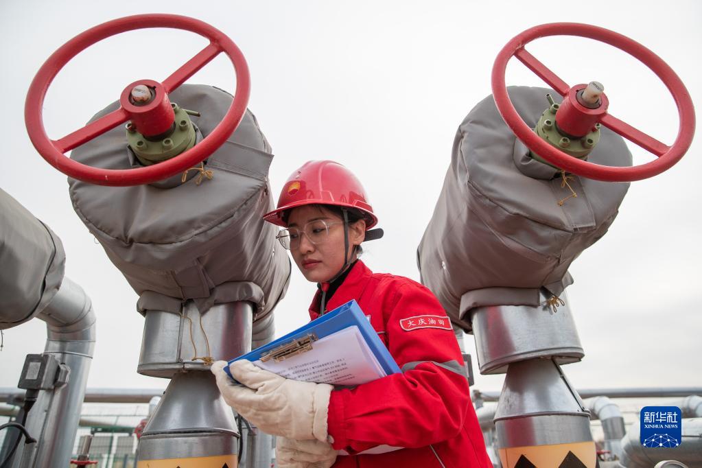3月7日,在大慶油田采氣分公司(儲氣庫分公司)第一作業區徐深1集氣站,采氣工王超博通過聽氣流聲分辨天然氣瞬時流量。