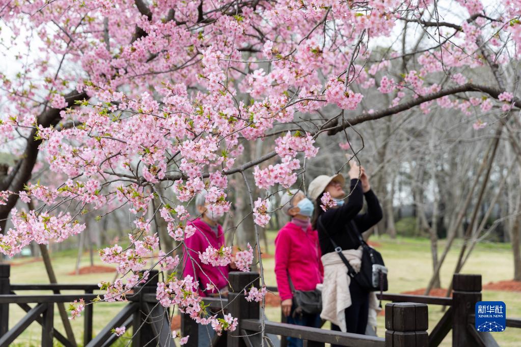 近日,上海市寶山區顧村公園的櫻花進入盛花期,吸引游客前來觀光賞花。目前,顧村公園櫻花種植面積達1500余畝,櫻花品種110種,櫻花數量16000余株。