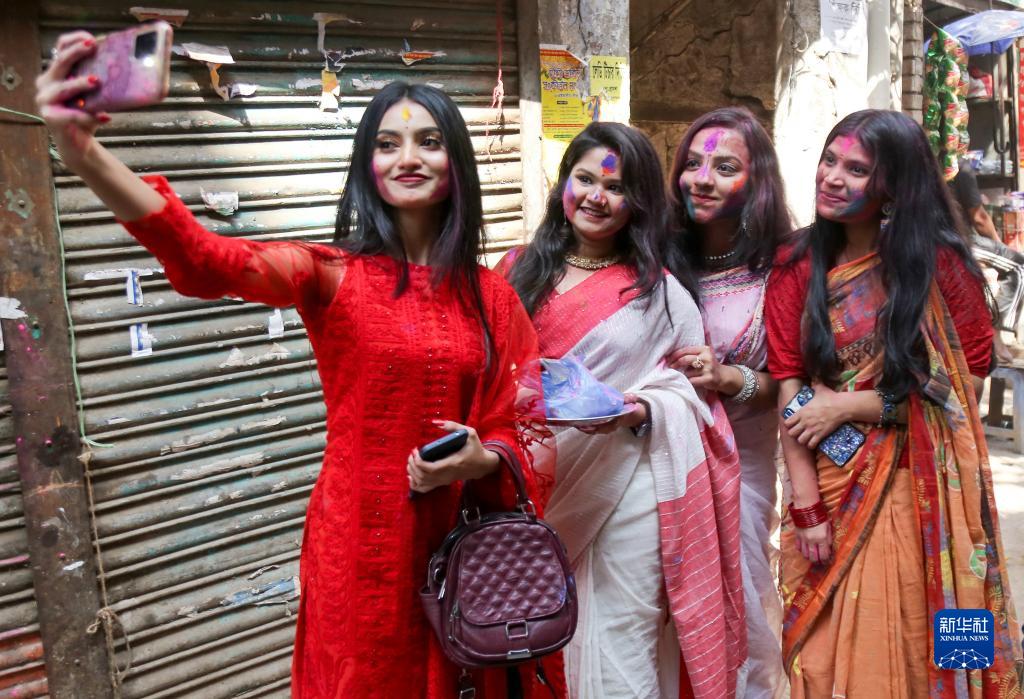 3月7日,人們在孟加拉國達卡參加灑紅節慶祝活動。