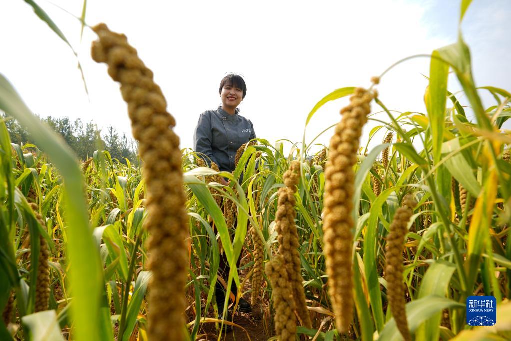 劉甜恬站在北京市密云區金叵羅村快要收獲的谷子地里(2022年9月28日攝)。