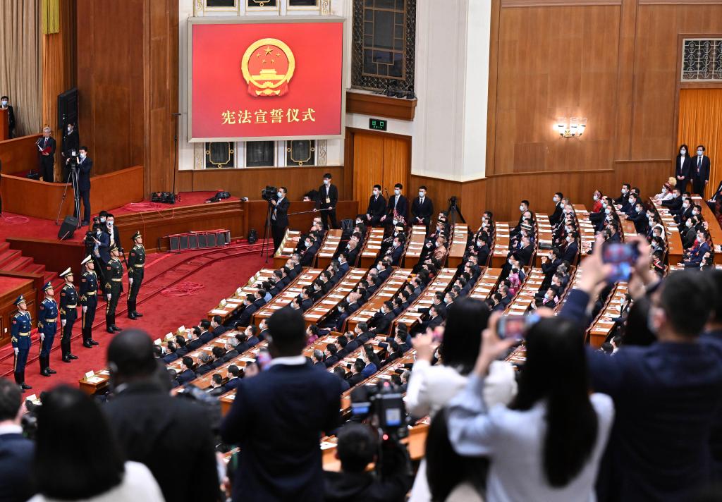 3月10日,中華人民共和國第十四屆全國人民代表大會第一次會議憲法宣誓儀式在北京人民大會堂舉行。
