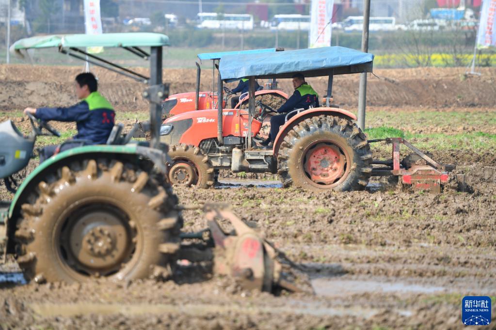 當(dāng)日,在湖南省湘潭市湘鄉(xiāng)市舉行的湖南省供銷合作社農(nóng)業(yè)社會化服務(wù)大聯(lián)盟成立儀式現(xiàn)場,種糧能手在200畝高標(biāo)準(zhǔn)農(nóng)田里操作農(nóng)機設(shè)備進(jìn)行“比武”,通過拖拉機犁田、旋耕機翻耕、植保無人機飛防等農(nóng)機技能比賽提升農(nóng)業(yè)服務(wù)水平,助力春耕備耕。