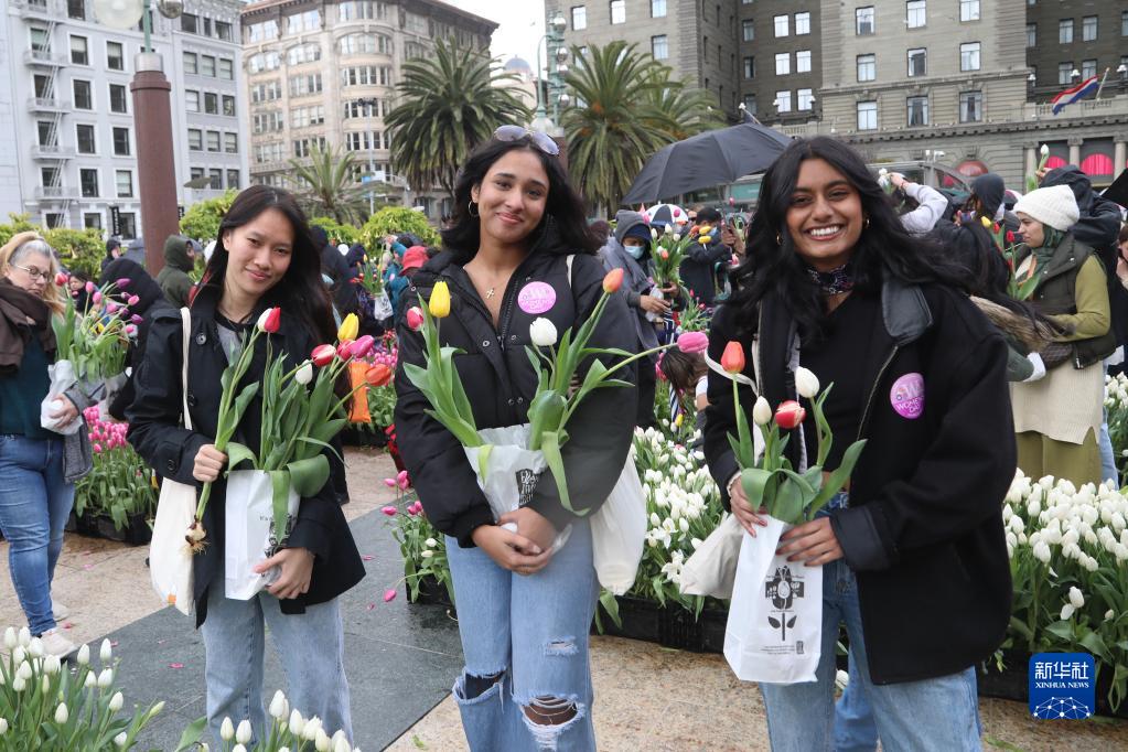 當(dāng)日,美國(guó)舊金山市在市中心的聯(lián)合廣場(chǎng)舉辦郁金香展,慶祝即將到來的“三八”國(guó)際婦女節(jié)。展出的鮮花不僅供市民免費(fèi)觀賞,還可免費(fèi)采摘。