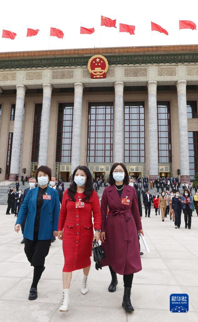 3月11日,中國人民政治協商會議第十四屆全國委員會第一次會議在北京人民大會堂舉行閉幕會。這是閉幕會后,委員們走出人民大會堂。