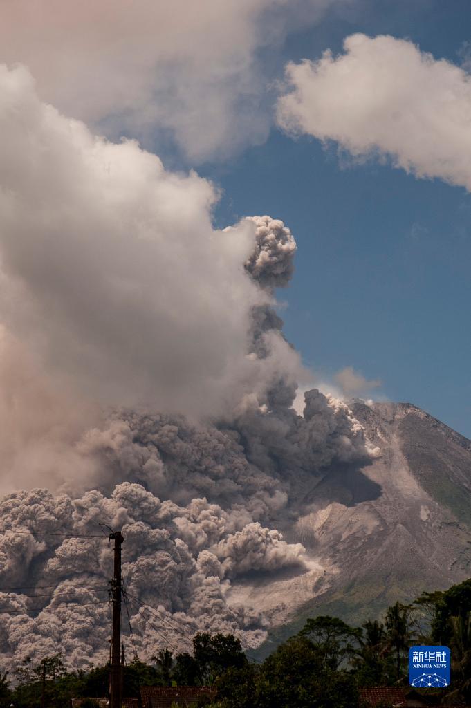 這是3月11日在印度尼西亞日惹拍攝的噴發的默拉皮火山。