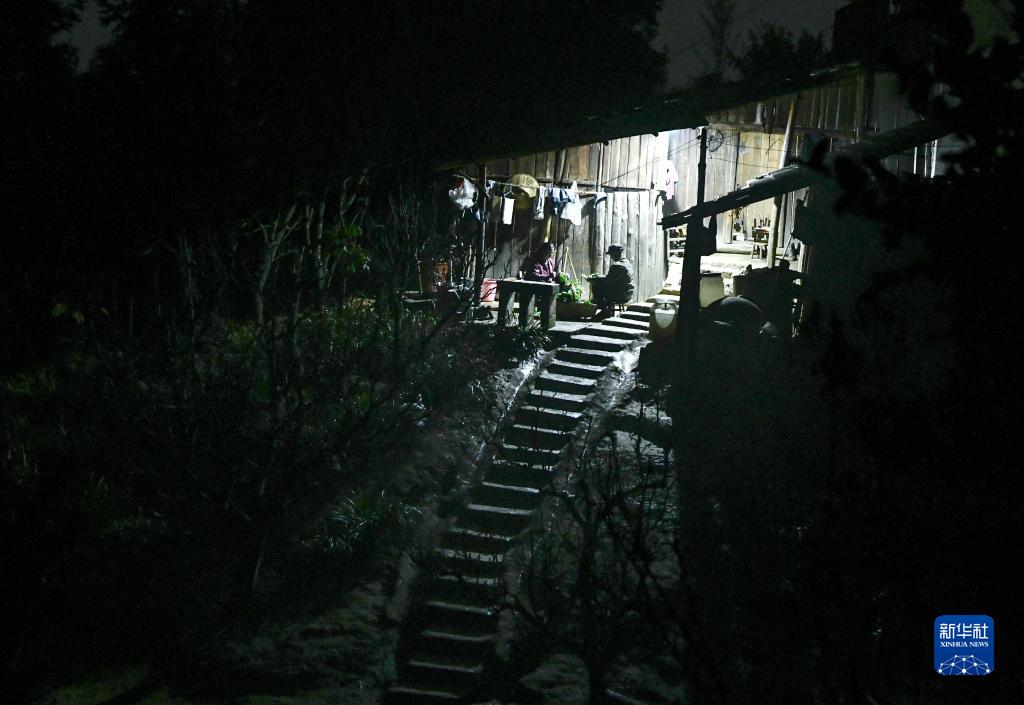 3月8日夜,黃同維與妻子在清理青菜,準備曬干制成鹽菜備食用。