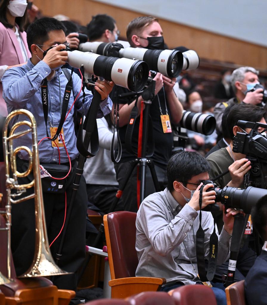 3月11日,十四屆全國人大一次會議在北京人民大會堂舉行第四次全體會議。這是記者在采訪拍攝。