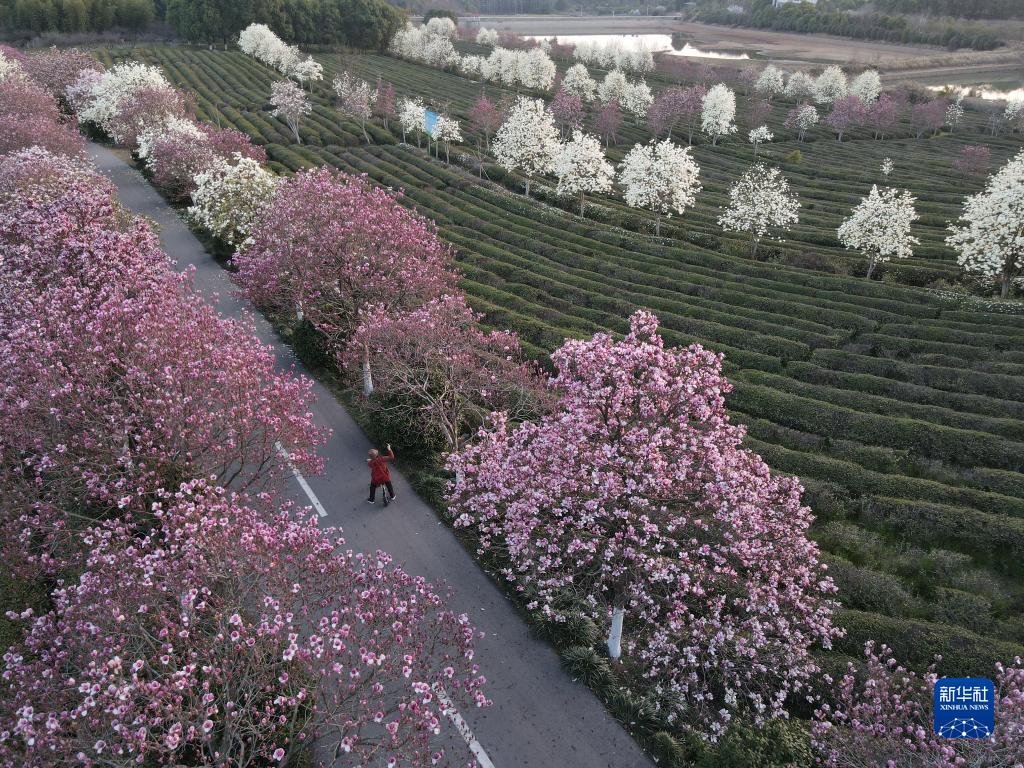 近日,隨著氣溫回升,位于江西省南昌市南昌縣鳳凰溝景區(qū)的大片玉蘭花、郁金香、櫻花競(jìng)相綻放,吸引了眾多游客前往踏春游玩。