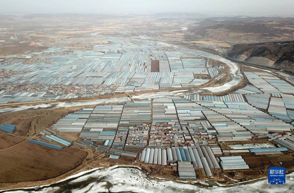 這是位于黑龍江省寧安市牡丹江畔的果蔬棚室(3月11日攝,無人機照片)。
