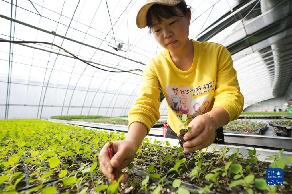 3月10日,在位于黑龍江省寧安市的寧安農(nóng)場現(xiàn)代農(nóng)業(yè)示范園棚室內(nèi),工作人員在忙碌。