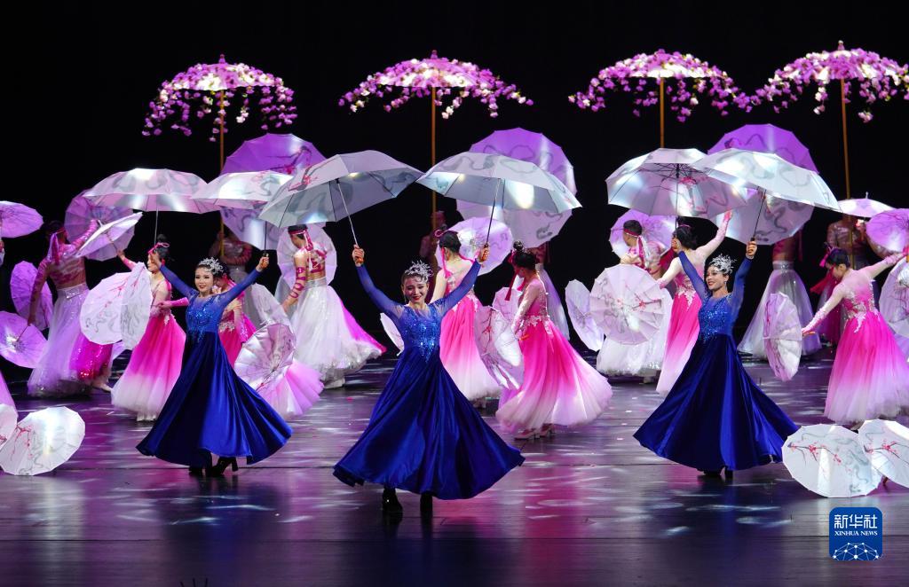 3月21日,在位于山東省濟(jì)南市的山東省會(huì)大劇院,演員表演魔術(shù)節(jié)目《飛花令·傘》。