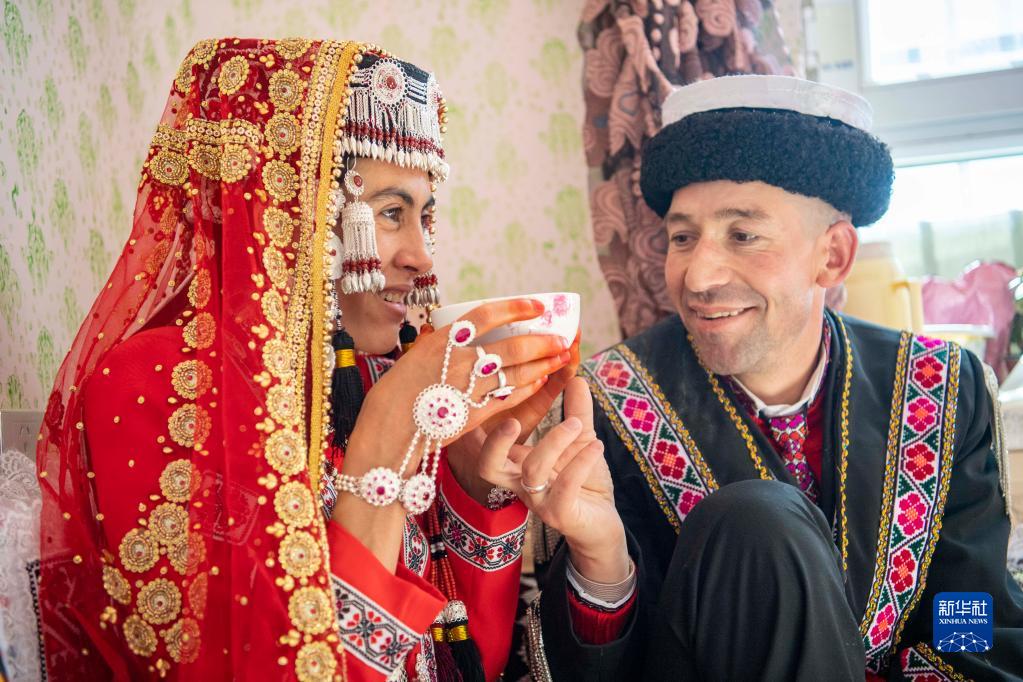 近日,位于塔縣縣城附近的富民村迎來一樁喜事——25歲的古麗汗·贊加比力和相戀三年多的買熱買提汗·青鐵木爾舉行婚禮。儀式按當地民俗傳統進行,氣氛熱烈隆重。親友、村民載歌載舞,相聚慶賀。